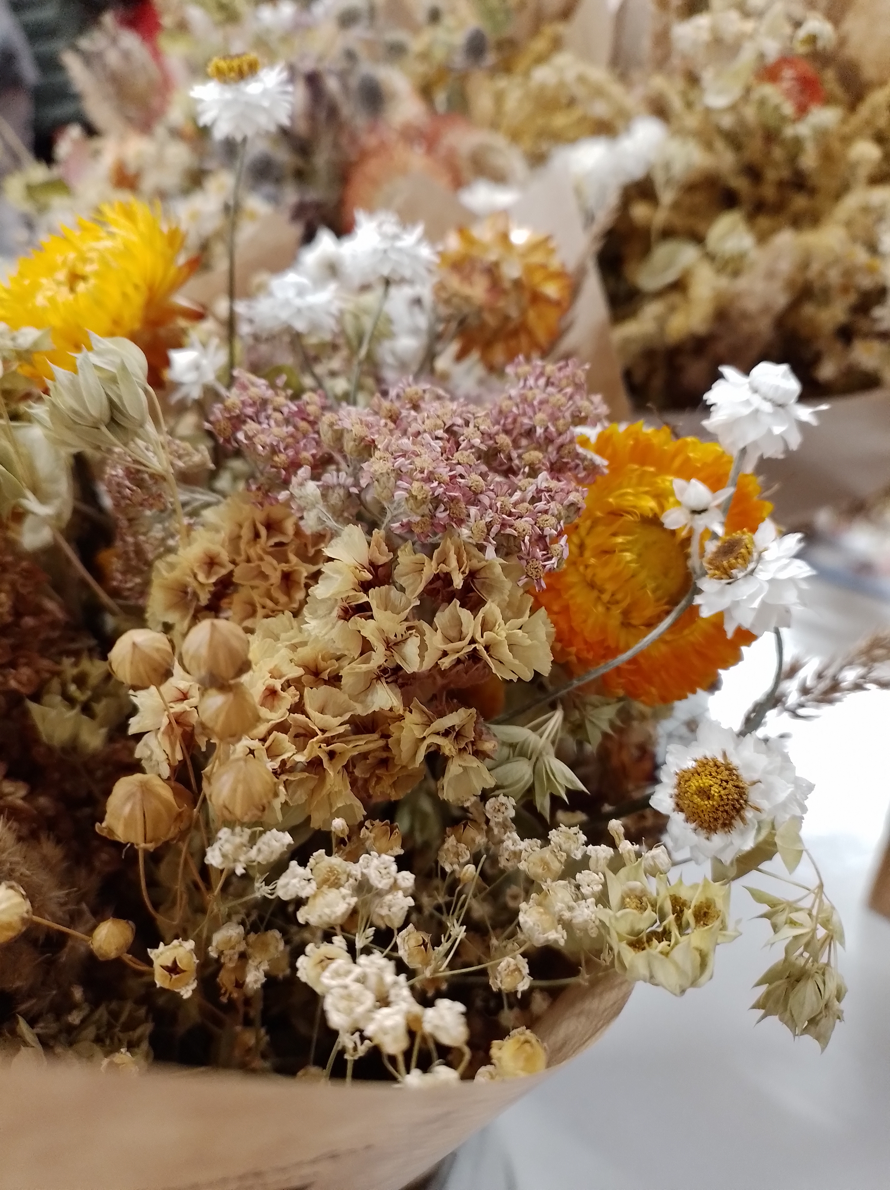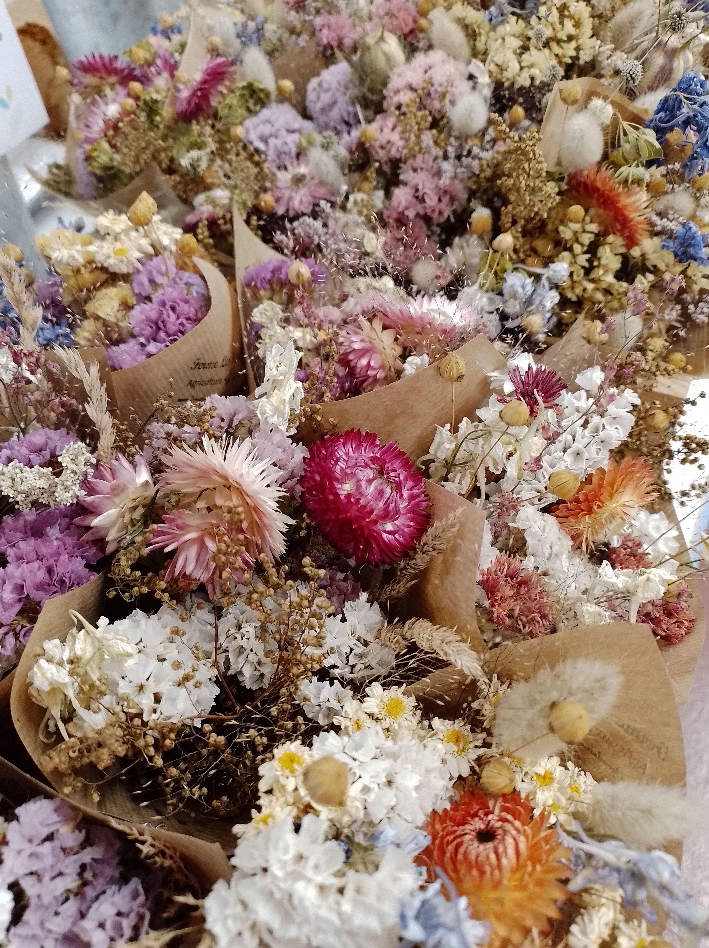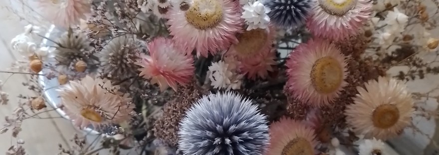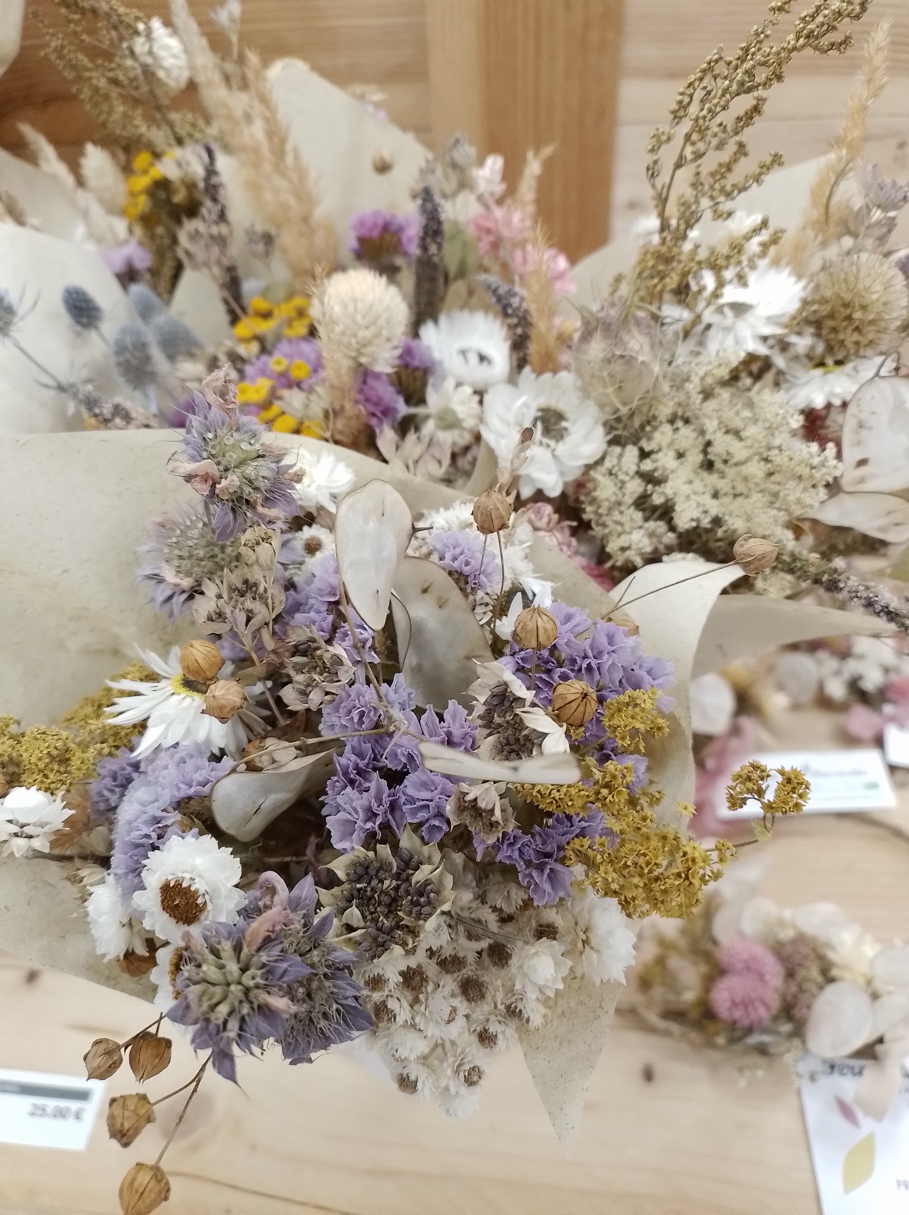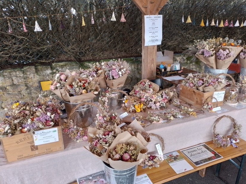 Cette hiver 2025-2026, retrouvez nos fleurs séchées en dépôt-vente et sur les marchés de Noël :