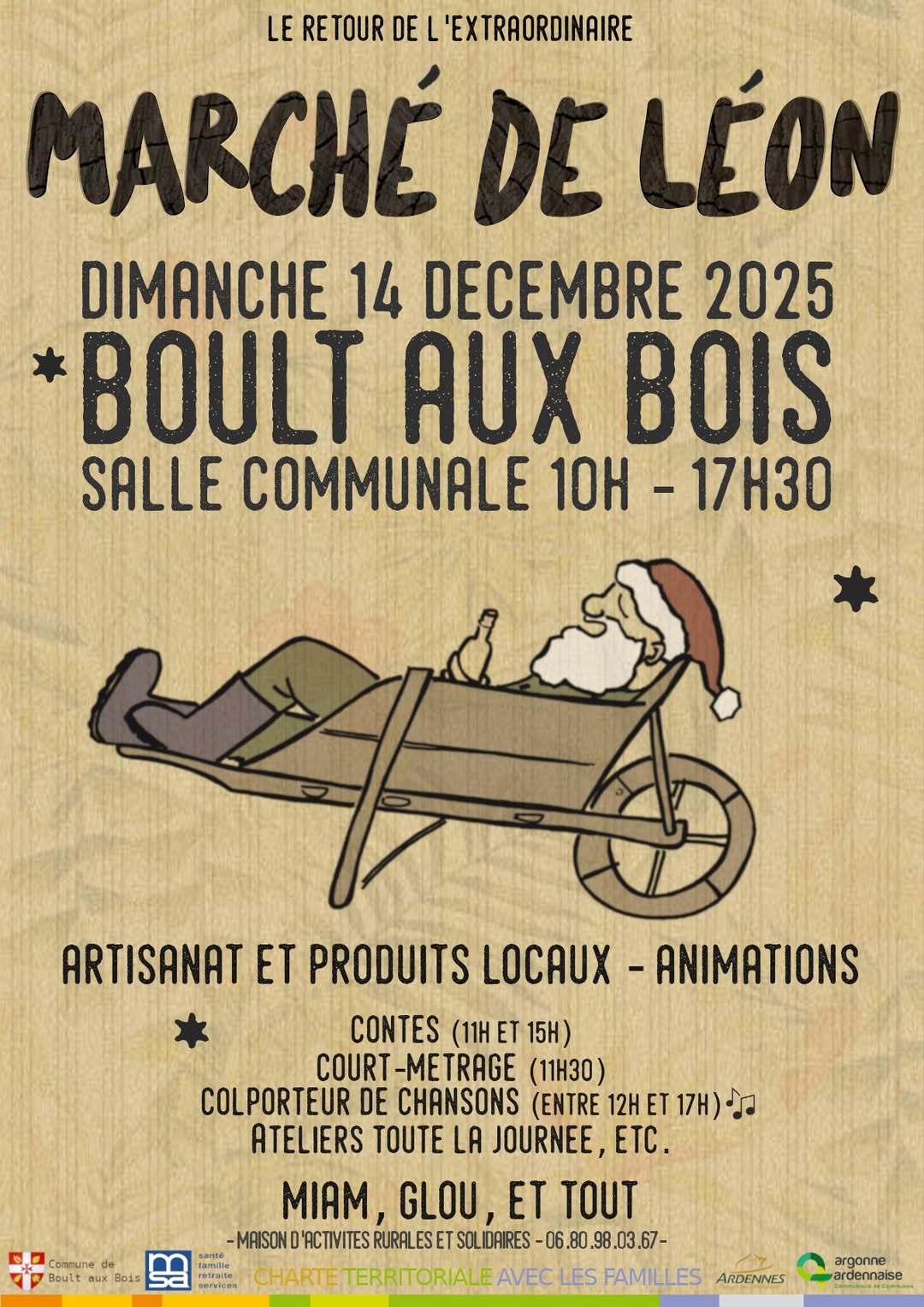 - Dimanche 14 décembre : MARCHÉ DE LÉON, Boult-aux-Bois (08), 10h-17h30