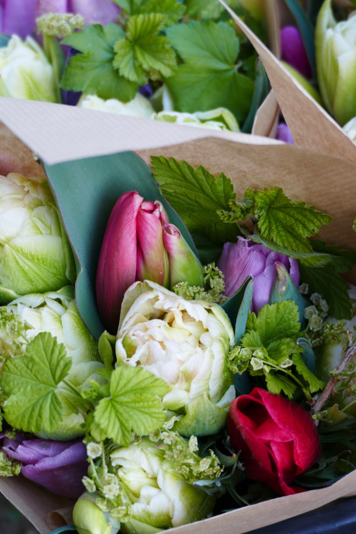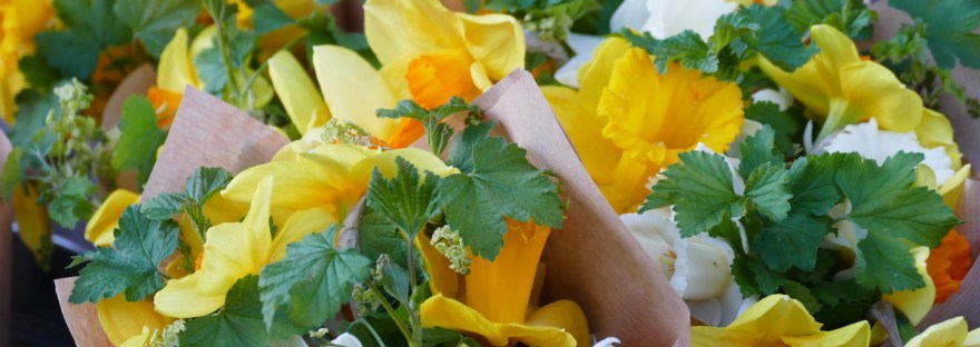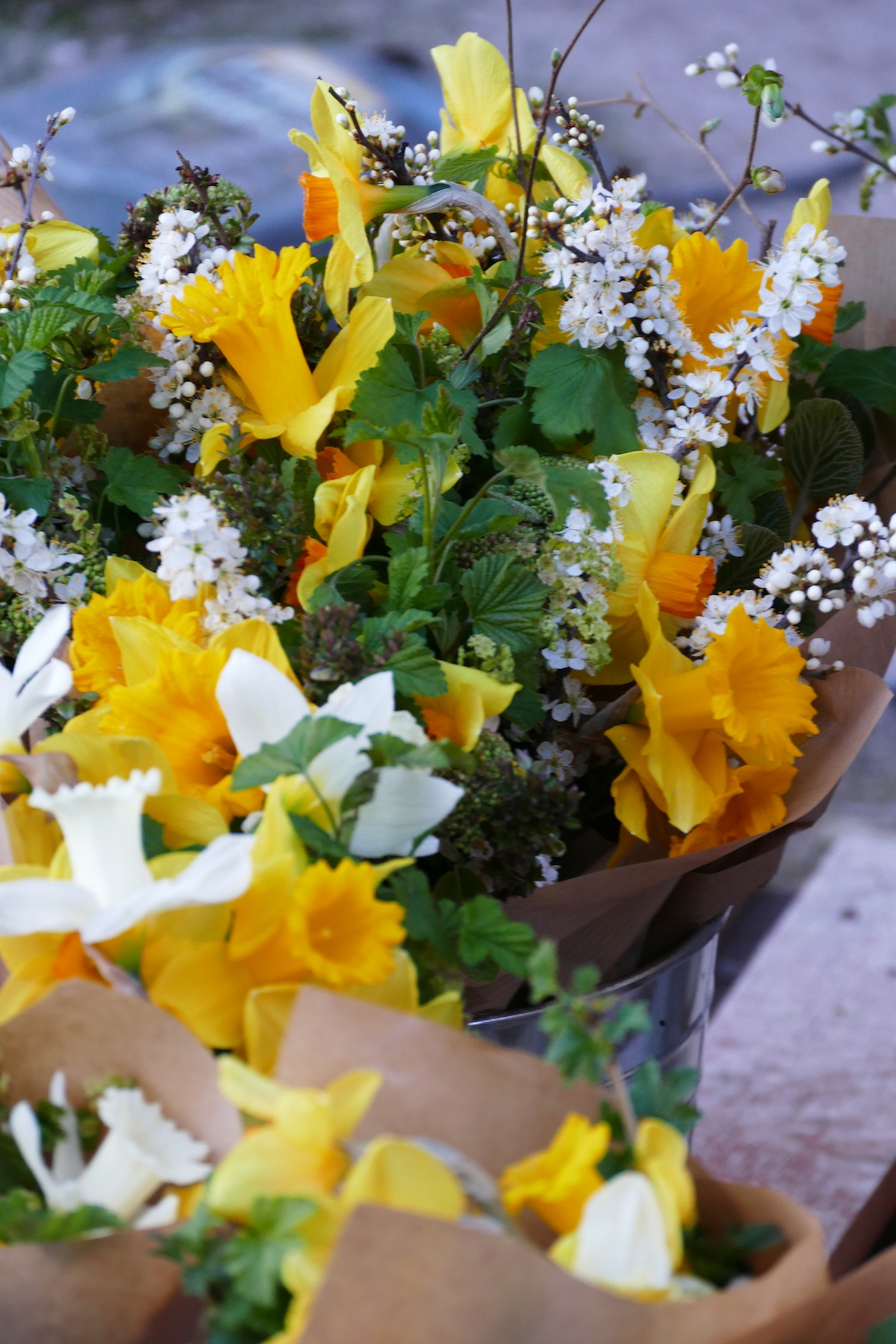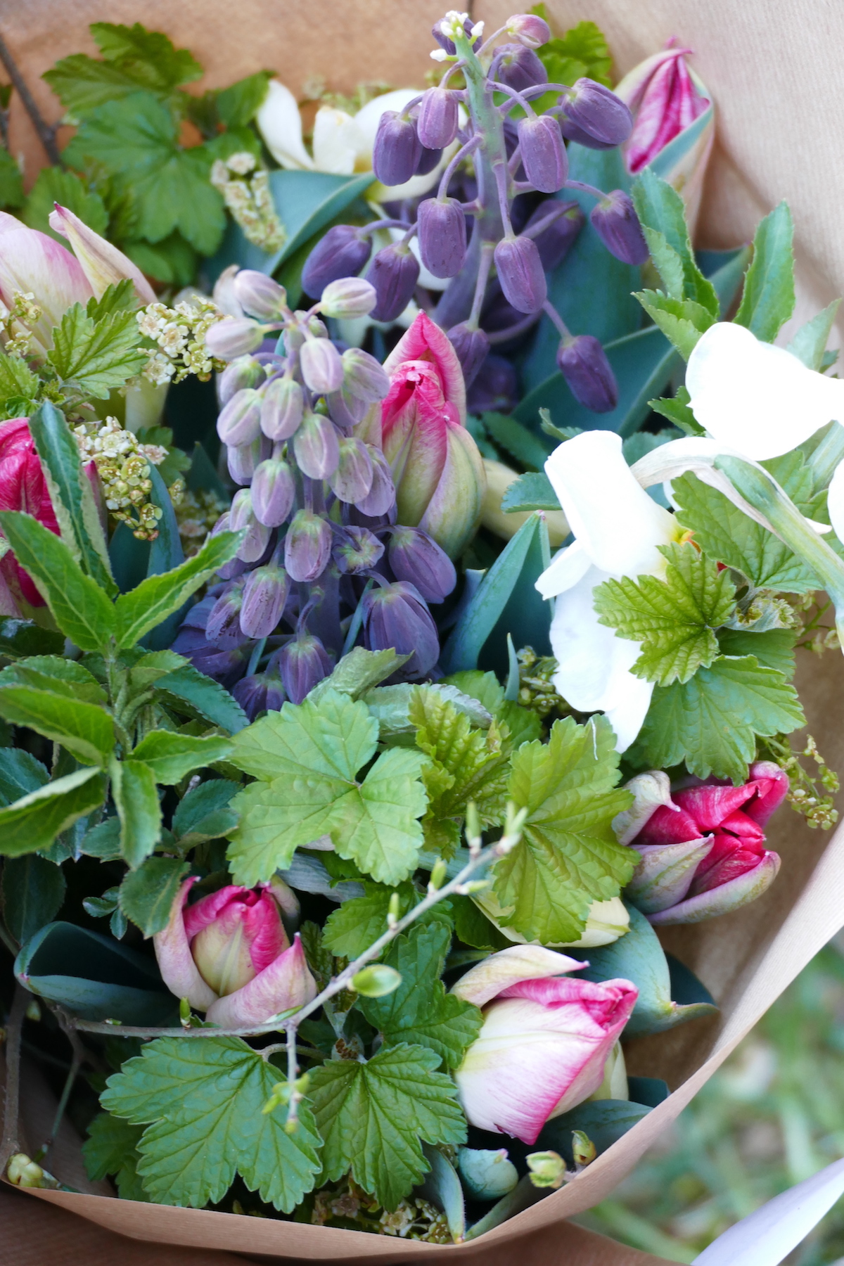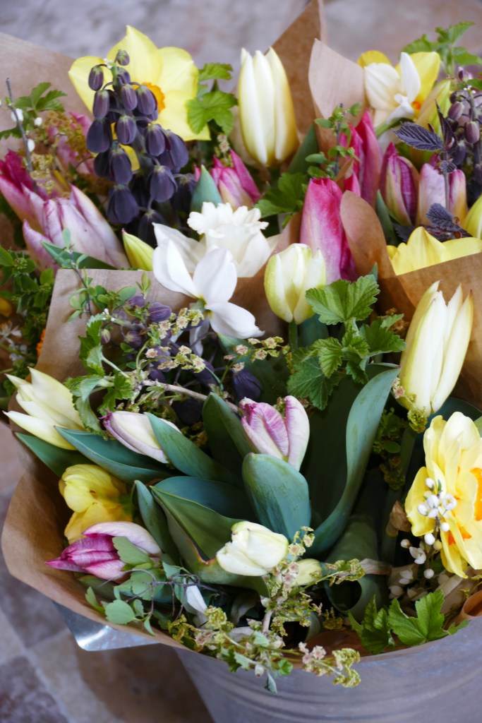 Narcisses, tulipes et groseilliers sauvages sont en fleurs depuis la mi-mars. Avec l’arrivée du printemps, nous avons donc repris les livraisons de bouquets de fleurs fraiches.