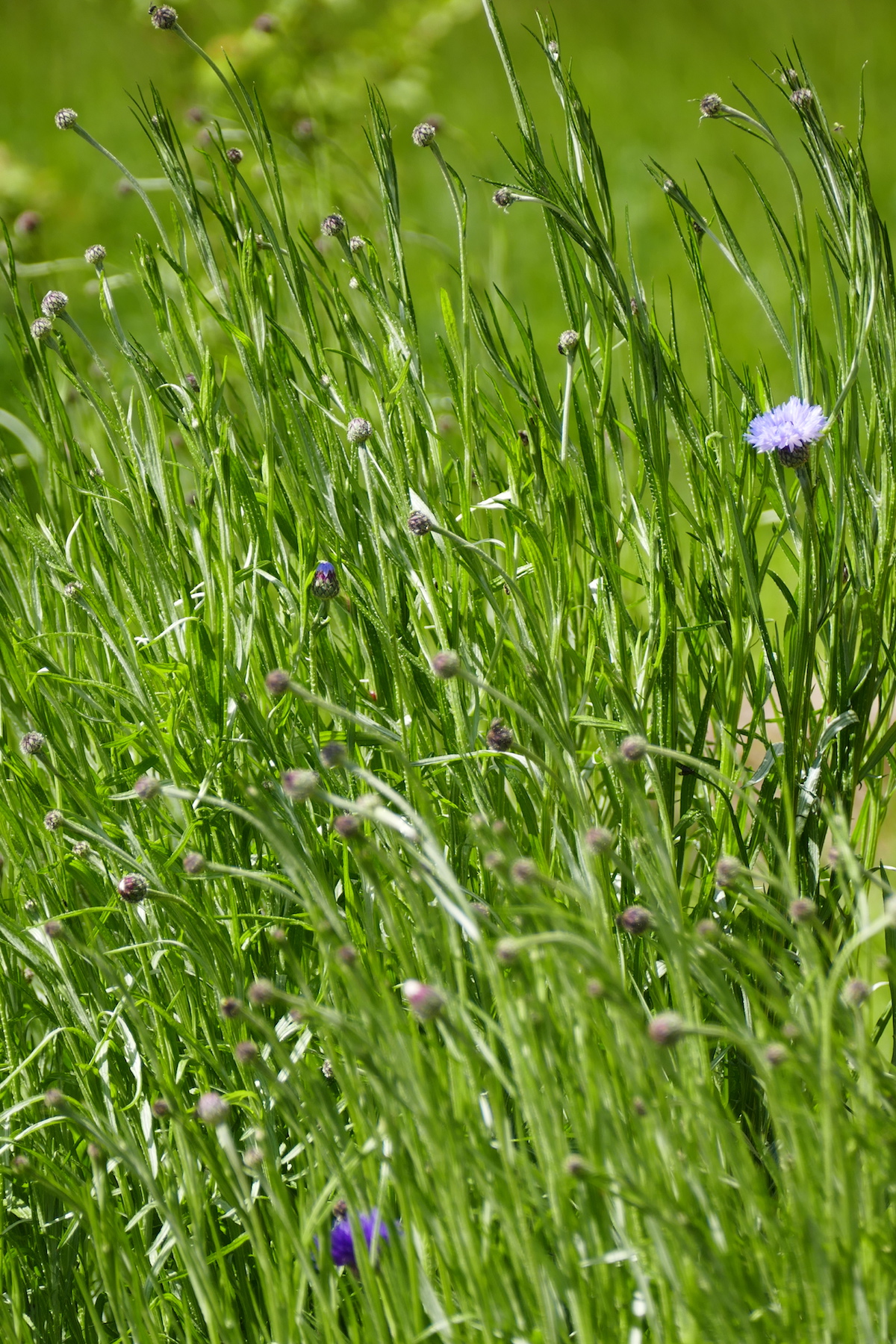 Les ancolies sont également en fleurs, le cerfeuil sauvage apporte une touche de blanc bienvenue. Le bleu des camassias et centaurées se marie à merveille avec le orange vif des giroflées – ce sont des couleurs complémentaires.
