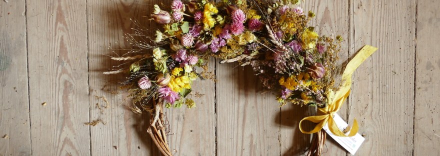 L’automne fait la part belle aux fleurs que nous avons séchées en grange tout l’été. Elles sont agencées dans des bouquets et des couronnes que vous pourrez retrouver dans plusieurs points de vente pour les fêtes de fin d’année.