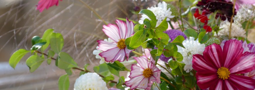 A cette occasion, n’hésitez pas à nous commander des bouquets composés ou des fleurs pour vos évènements, petits ou grands. Nous réalisons nos bouquets uniquement avec des fleurs et feuillages que nous cultivons en bio. En ce moment, les dahlias sont à l’honneur et mis en valeur par les scabieuses, cosmos, zinnias et autres beautés de fin d’été.