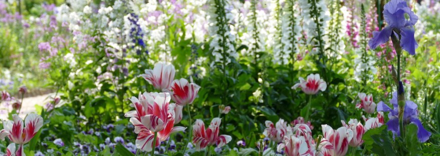 Les annuelles emplissent le jardin de couleurs : muflier, cosmos, myosotis, scabieuse, ammi, rudbeckia, soucis…